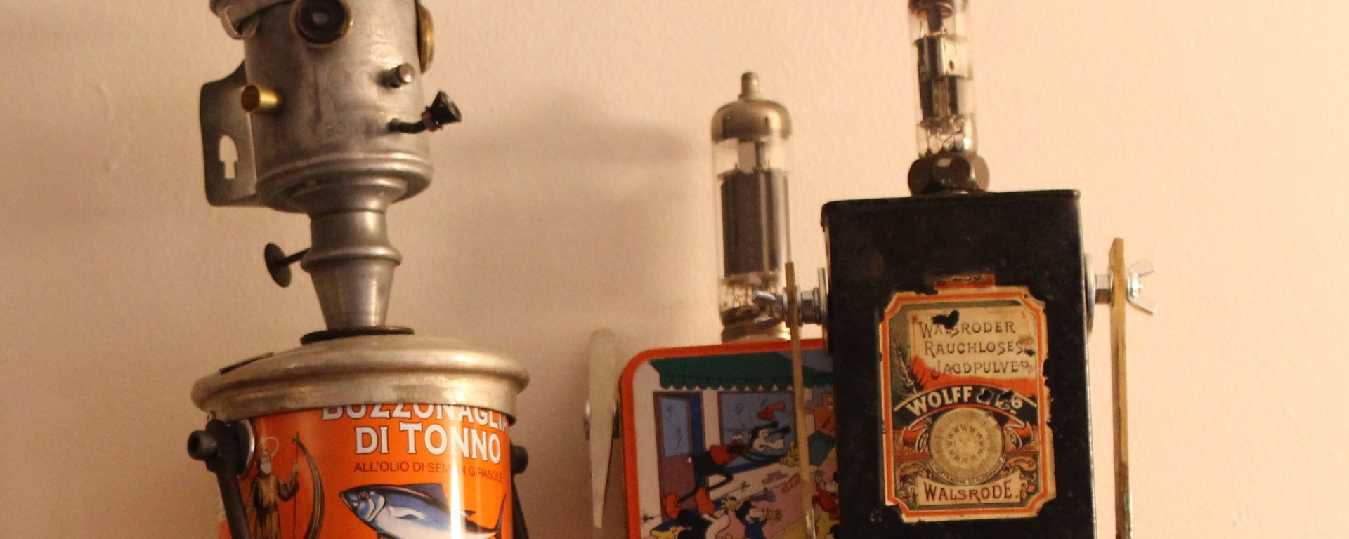 «Nasce senza un progetto preciso. Nasce per necessità. L’idea dei robot era latente da tanto tempo. I primissimi esperimenti di questo progetto nascono nel 2006, quindi davvero tanto tempo fa. Poi, vidi degli altri artisti che fanno parte della corrente “recycled-robots” (robot costruiti con materiale di recupero) e ho visto che si cimentavano con materiali più complessi rispetto a quelli che utilizzavo io: scatole e pezzi di vecchie radio. Io sono un accumulatore di cose vecchie del passato e ho avuto un’illuminazione: non potevo disfarmi dei ricordi. Che fai, lo vendi un oggetto della nonna? No. Allora lo trasformi in un robot. Nel momento in cui lo trasformi in un robot, gli dai un prezzo? No. È così che nasce l’idea dei robot da compagnia che si possono avere solo ed esclusivamente adottandoli. Quindi il progetto è nato in maniera spontanea. Quando poi ho capito che questa cosa funzionava proprio per questo motivo, ho deciso che doveva rimanere così. Tuttora, nonostante il grande successo di Adotta un robot, i robot continuano ad essere disponibili solo attraverso l’adozione».