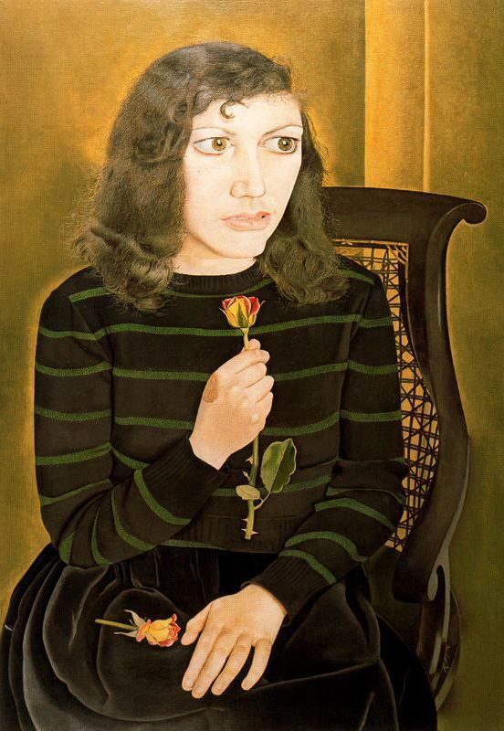 Nel ritratto de “La ragazza con Rose” (1947-48), realizzato a Kitty Garaman (sua mogle), ogni singolo dettaglio (capelli, ciglia, iride e bocca) viene rappresentato con estrema cura. La caratteristica del dipinto che più di tutte desta maggiore attenzione, tuttavia, è la singolare mancanza di proporzione che sussiste tra gli elementi del viso e le altre parti del corpo: gli occhi, per esempio, sono troppo grandi per il viso che, a sua volta, è troppo grande rispetto a tutto il resto.