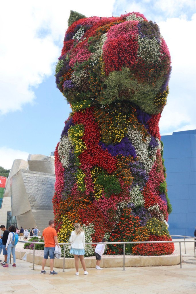 Ad accogliere i visitatori del Guggenheim di Bilbao troviamo Puppy, la maestosa e iconica scultura di Jeff Koons che si erge a ben 12,4 metri di altezza. Questo cucciolo di West Highland White Terrier, completamente avvolto da piante e fiori, non passa certo inosservato: è una delle opere più amate e fotografate del museo. Creato nel 1992 per una mostra temporanea nella città tedesca di Arolson, “Puppy” è entrato a far parte della collezione permanente del Guggenheim a partire dal 1997, diventando – per usare le parole di Koons – simbolo di “sicurezza, ottimismo e vitalità” anche oltre i confini della città basca.