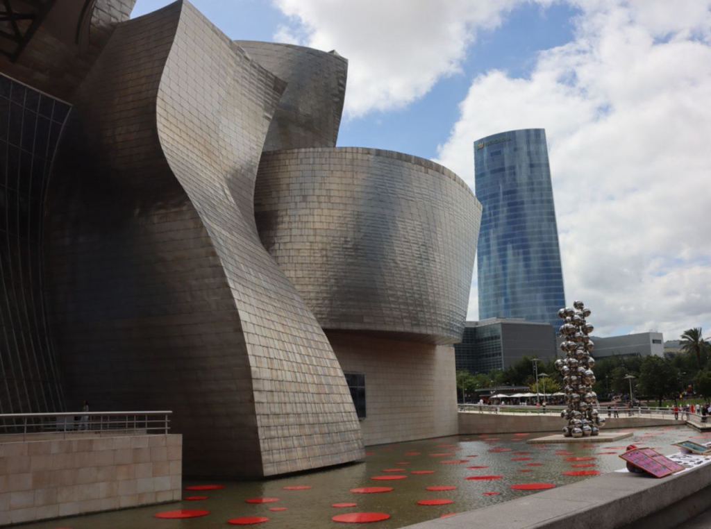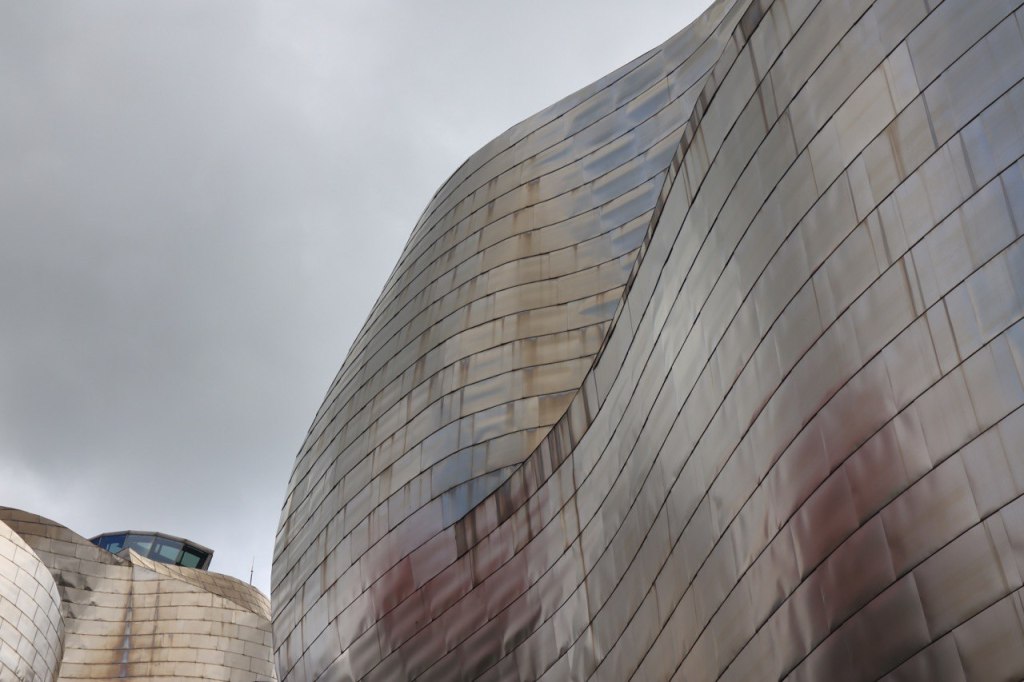 Lungo il fiume Nervion di Bilbao forme ondulate e vorticose disegnano i contorni di una grande nave scintillante. 33mila lastre in titanio estremamente sottili, riflettono una luce sempre differente, derivante dalle condizioni atmosferiche che cambiano di continuo.