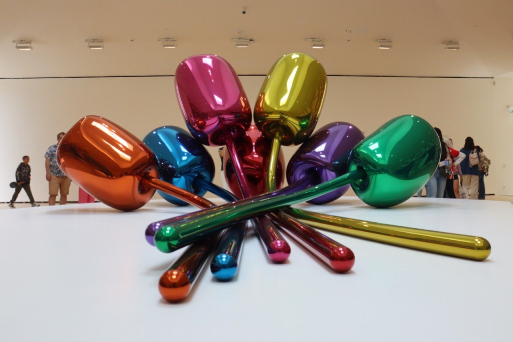 “Tulips” (“Tulipani”), è l’altra scultura di Jeff Koons che non puoi assolutamente perderti durante il tuo percorso. Questo bouquet di fiori multicolori a forma di palloncino (circa 2 metri di altezza per 5 metri di diametro) fa parte della serie Celebration, cominciata dall’artista americano nel 1994.