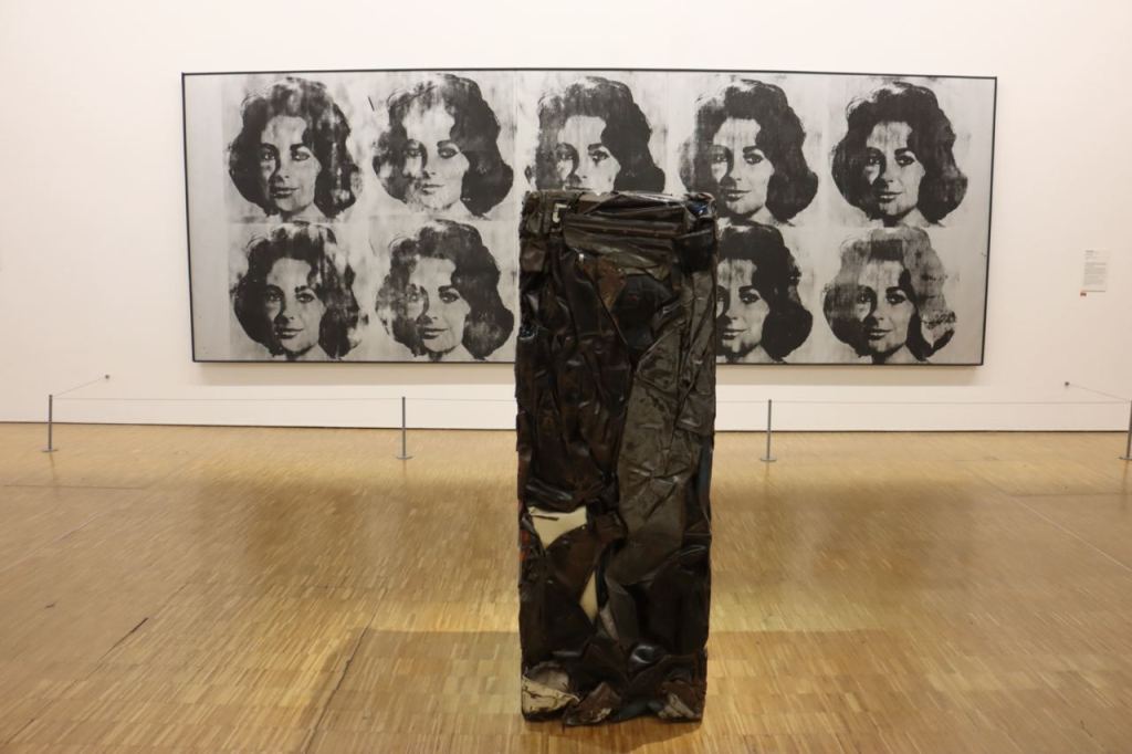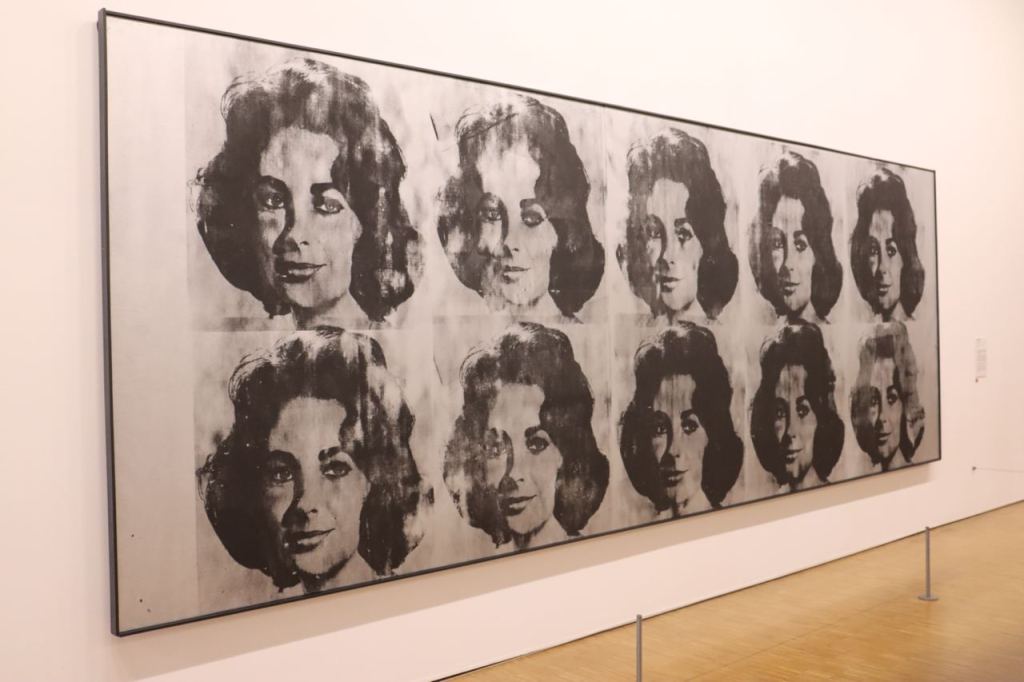 La rappresentazione della star hollywoodiana è qui ripetuta per ben dieci volte attraverso la tecnica della serigrafia su una tela. Warhol non utilizza una foto qualunque, ma un’immagine iconica di Elizabeth Taylor, precisamente quella scattata su richiesta della Columbia Pictures per la promozione del film Suddenly Last Summer.