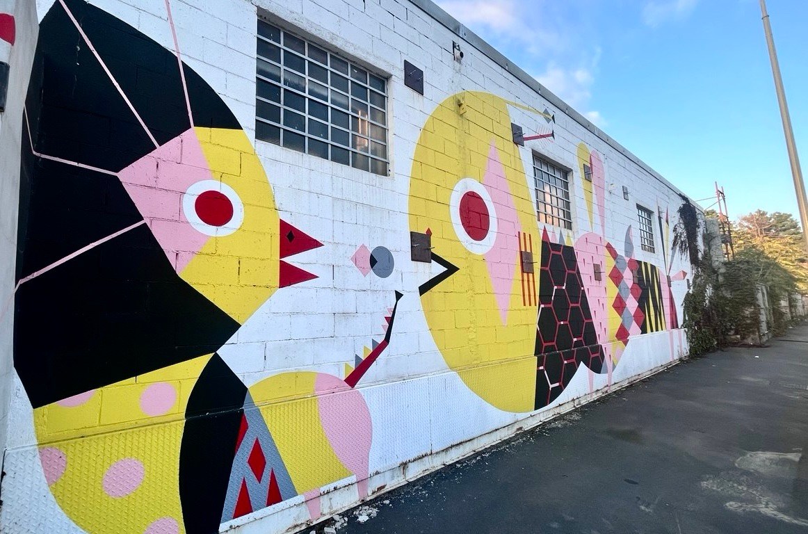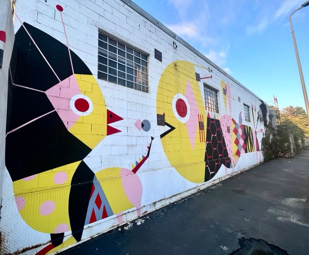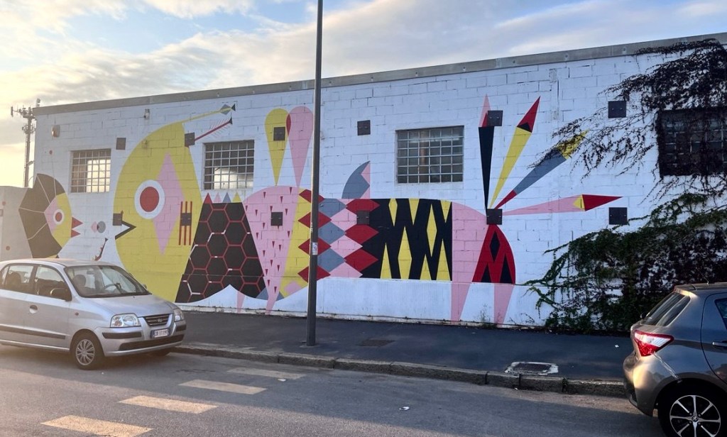 Un processo che ricorda quello dei giochi per bambini, dove una forma può diventare qualunque cosa, mentre un oggetto troppo realistico limita l’immaginazione. Così i poligoni diventano vere e proprie relazioni. Le figure sul muro sembrano sostenersi tra loro, cercare un equilibrio, incastrarsi come parti di un bellissimo racconto collettivo che rianima la città.
