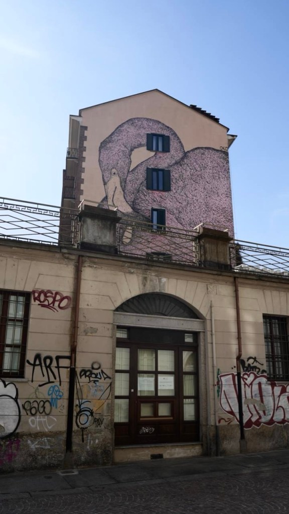 Cosa ci fa un fenicottero rosa tra i palazzi e le strade del centro di Torino? E, soprattutto, cosa sta cercando di comunicare?