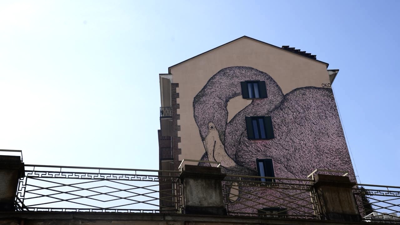 Cosa ci fa un fenicottero rosa tra i palazzi e le strade del centro di Torino? E, soprattutto, cosa sta cercando di comunicare?