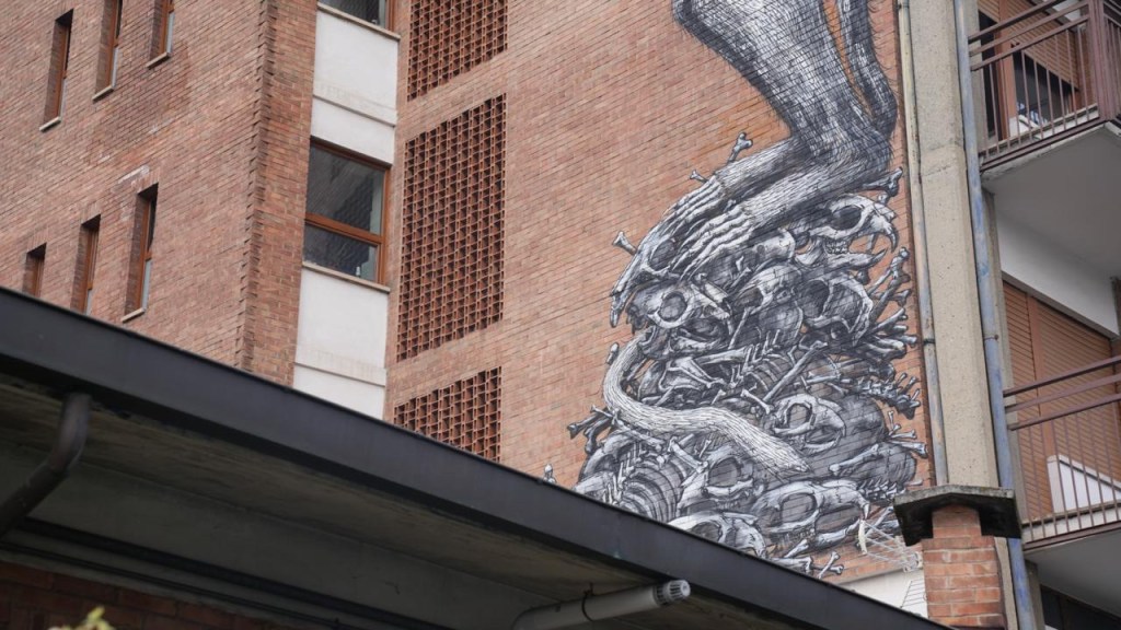 L’opera, realizzata nel 2010 in occasione del festival PicTurin, è firmata da ROA, artista noto per i suoi animali monumentali e ricchi di dettagli. Ed è proprio su questa attenzione minuziosa al particolare che vale la pena soffermarsi per comprendere a fondo il suo lavoro.