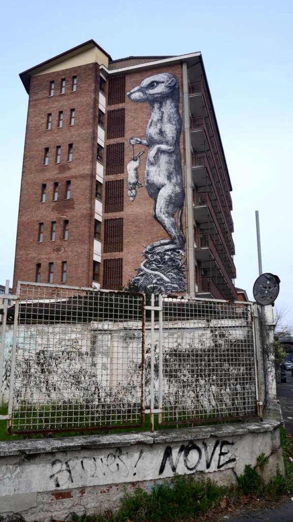 Restiamo nel quartiere Aurora. A pochi metri dal murale di Ericailcane, sulla parete di un edificio affacciato su Lungodora Savona, ci aspetta la prossima tappa del nostro tour torinese.