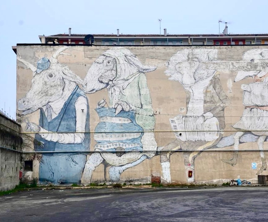 A Torino, lontano dai percorsi turistici più battuti, c’è un luogo (in via Fiocchetto 15) dove l’attesa ad una fermata degli autobus si trasforma in una delle opere più suggestive della città. Tra fiaba e realtà Realizzata nel 2010 da Ericailcane in occasione del Festival PicTurin, l’enorme murale raffigura una scena tanto insolita quanto familiare: su una panchina siedono una capra, una pecora, una scimmia … Continua a leggere Quando l’attesa ad una fermata diventa arte: il murale di Ericailcane a Torino