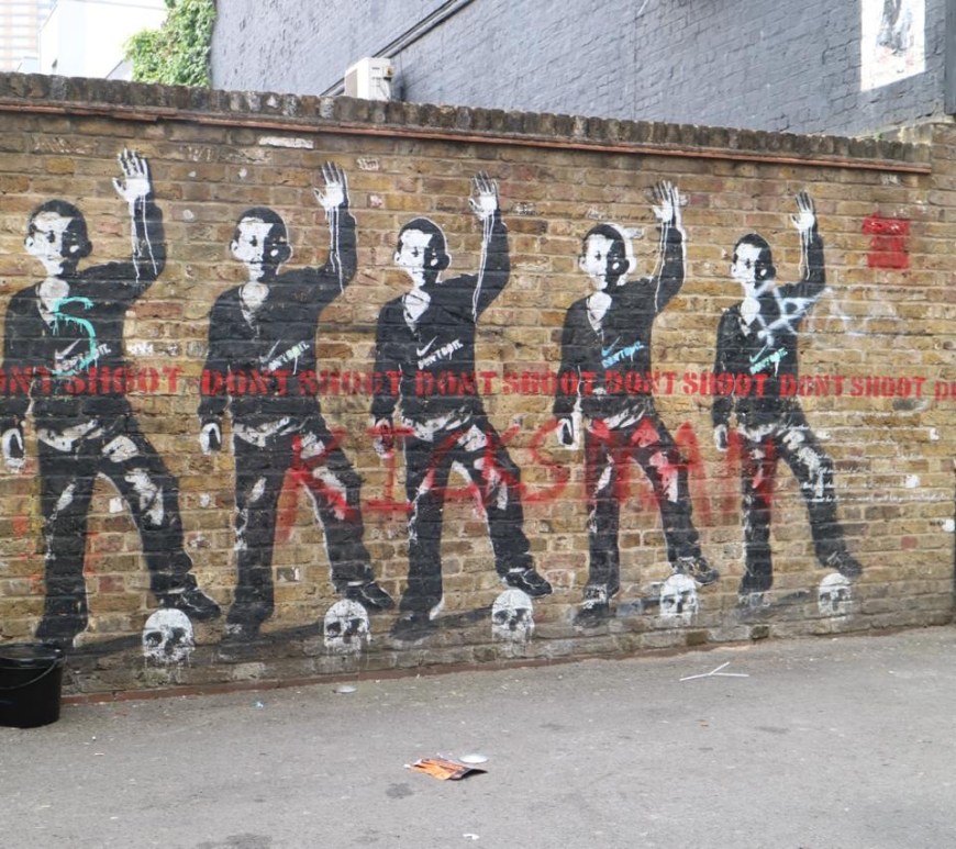 A Londra, nei pressi di Rivington Street si trova una delle opere più significative di Bambi, che raffigura cinque ragazzi identici con la mano sinistra alzata in segno di resa. All’altezza dell’addome di ciascuna figura compare, ripetuto in rosso, il messaggio “Don’t Shoot”. L’opera denuncia la tragica uccisione, nell’agosto del 2014, di Michael Brown, un diciottenne afroamericano disarmato, colpito da un poliziotto a Ferguson (Missouri). … Continua a leggere “Don’t Shoot”: Bambi dà voce alla protesta contro le disuguaglianze razziali